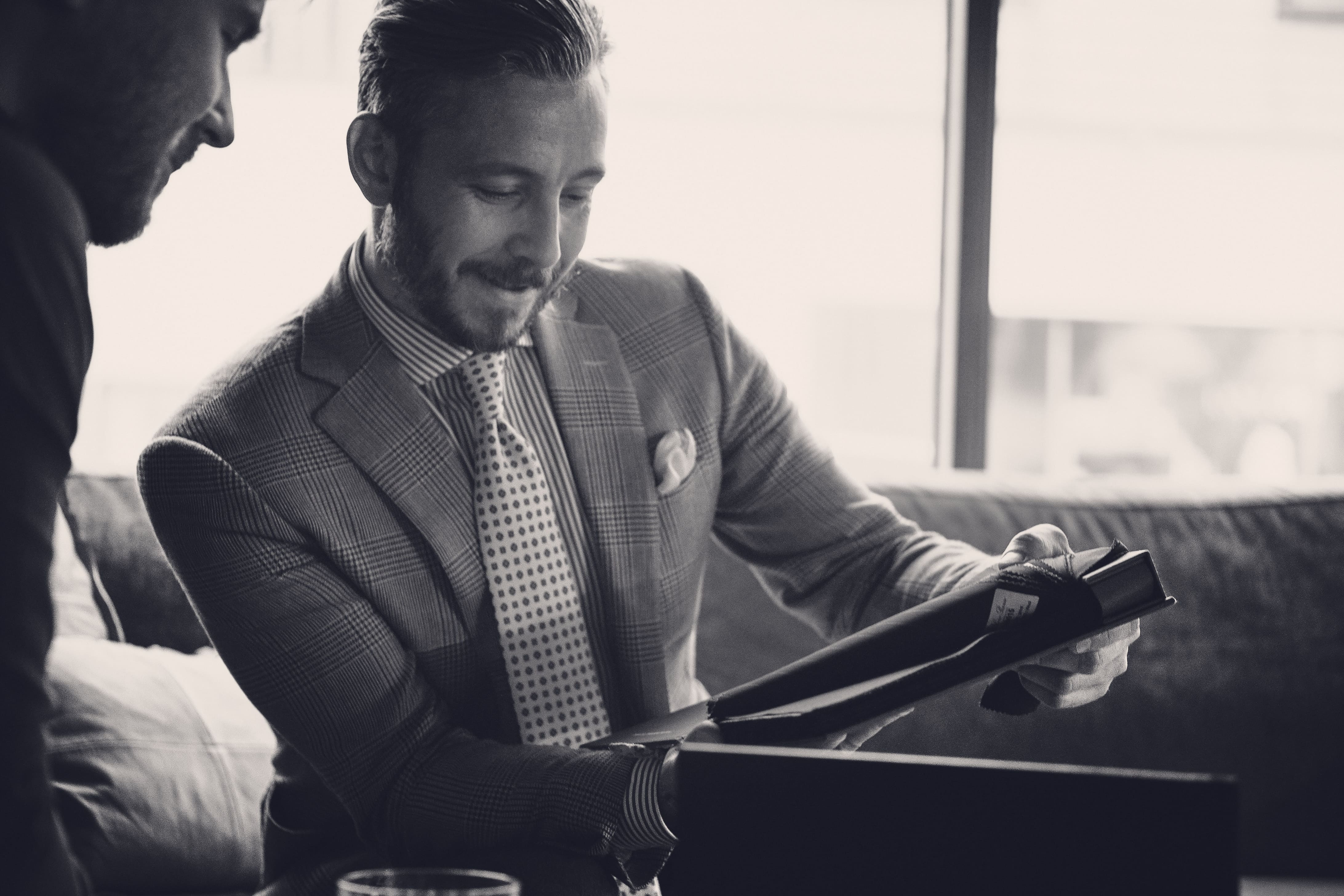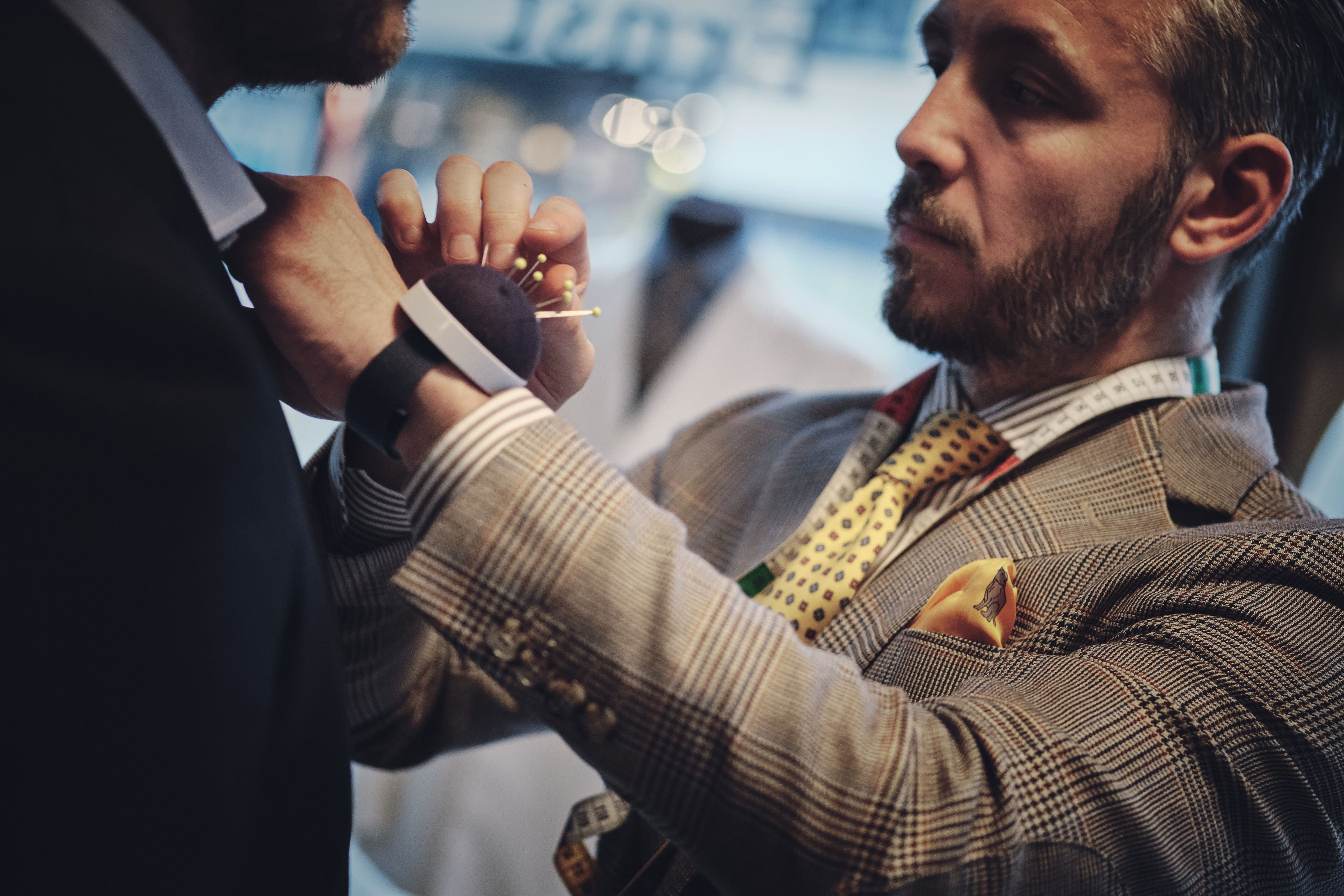 Med hjelp fra oss så velger du ut stoffer og detaljer til ditt nye antrekk. Sammen designer vi ditt drømme antrekk. Vi avslutter timen med at vi tar dine mål som vi lagrer i vår database for seinere bestillinger.